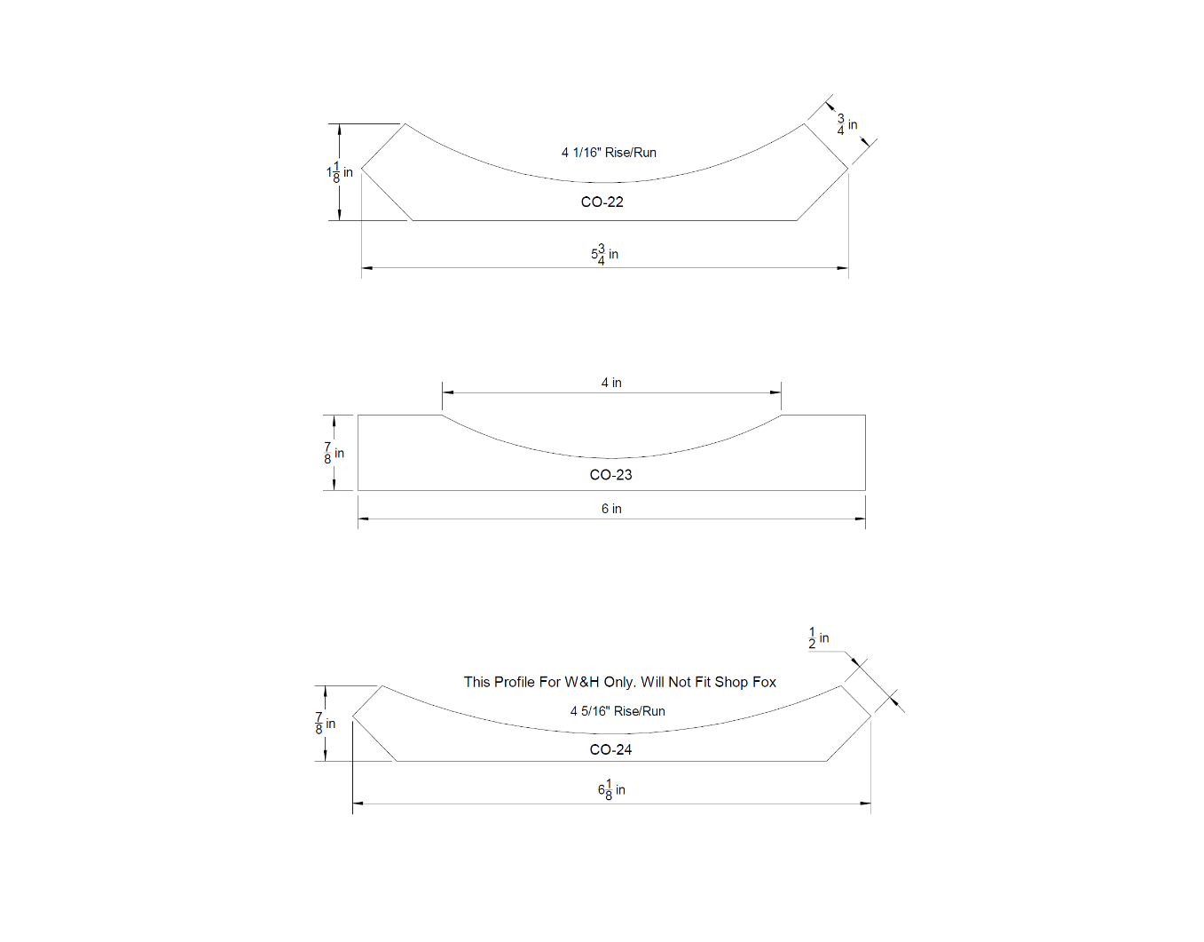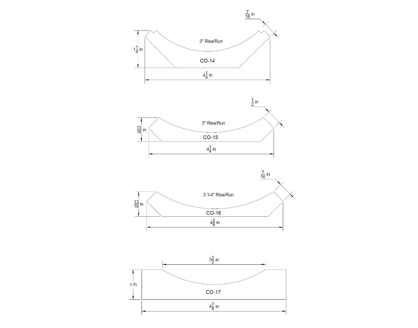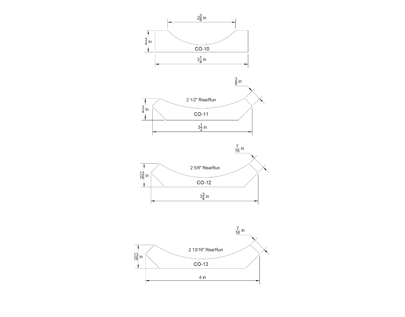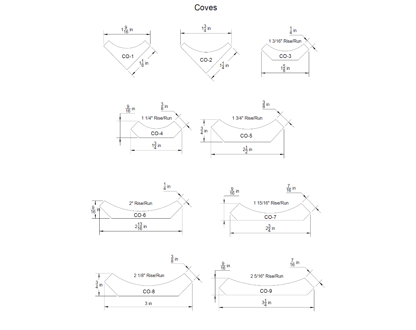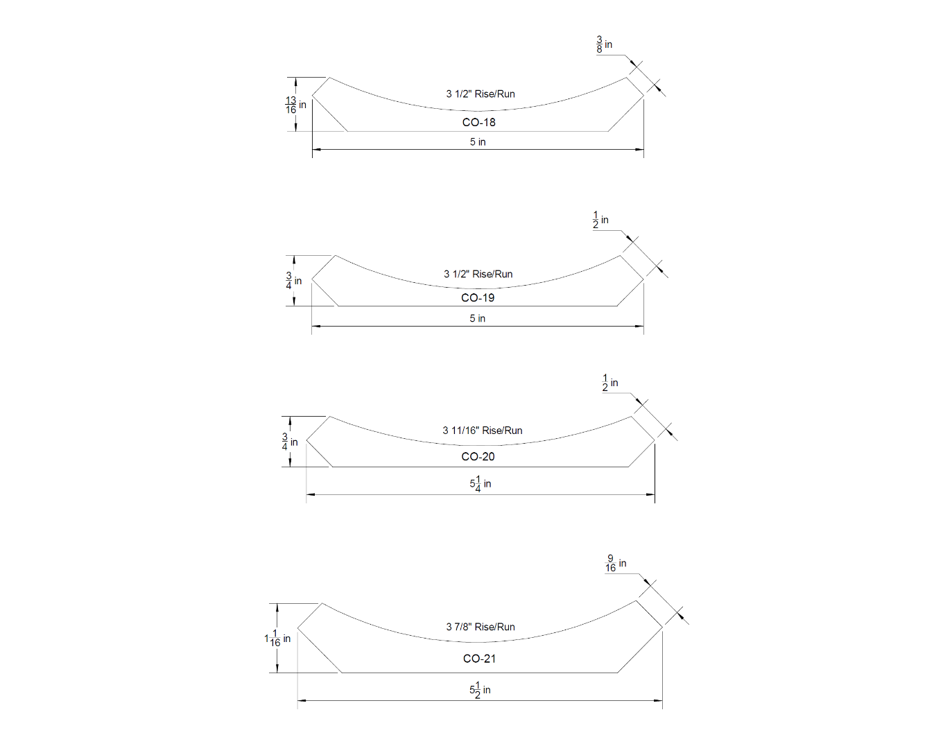 Rise and Run are indicated for each profile. Here is an example below of what Rise and Run are: