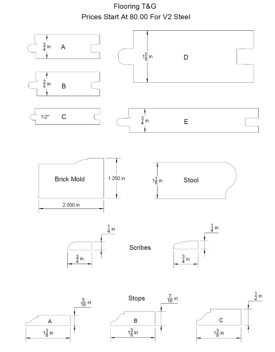 T&G, Brick Mold, Stool, Stops, Scribes: